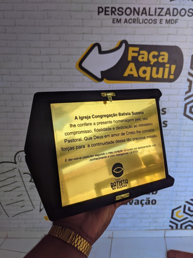 PLACA DE HOMENAGEM COM ESTOJO - ACRÍLICO